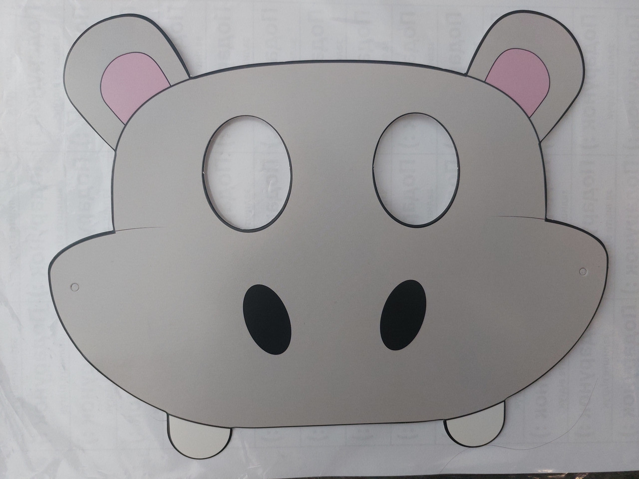 Дитяча маска Бегемот із картону 23 на 18 см сірий